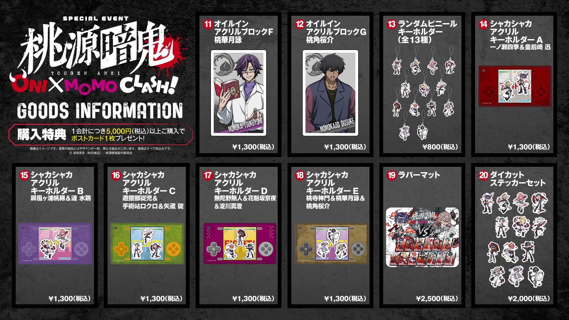 - ※「ランダムブロマイドカード」のみおひとり様1会計各30点まで、そのほか商品は各5点までの購入制限がございます
